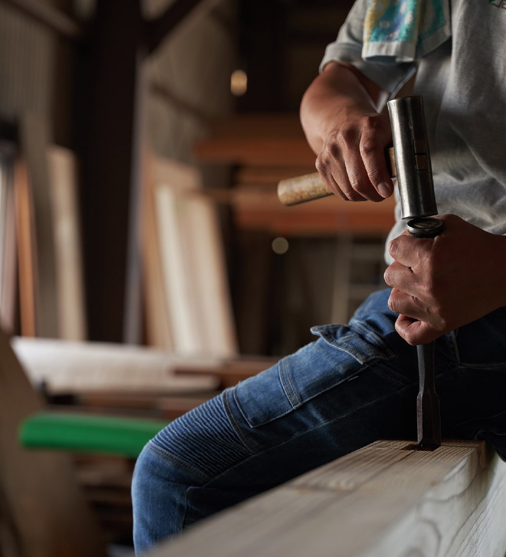 親から子へ、代々受け継がれてきた技術と伝統がお客様の想いと重なることで形になります。人間に大切な3大要素のひとつである「住」を担う、責任ある大工の仕事は木と木を組み合わせるだけではありません。伝統技術を駆使し、地震大国日本で穏やかに生活できる基盤をつくることは家づくりに携わる職人としての責任です。