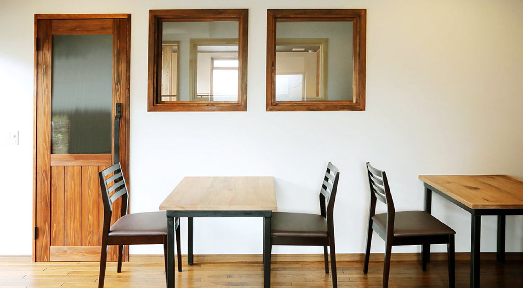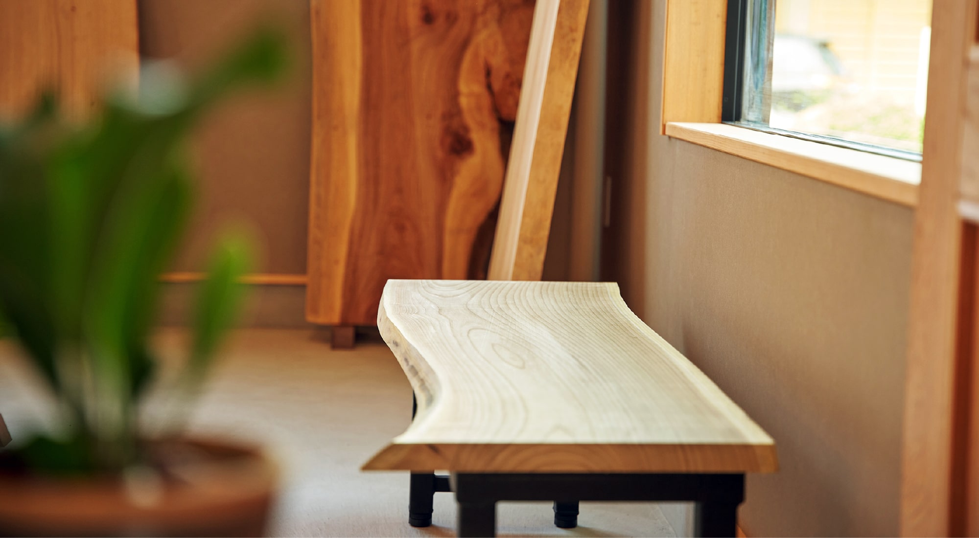 木でできた家具は、古くなって傷が増えてもヤスリで削り、塗料を塗れば元通り。長く、愛着をもってご使用いただけます。また、一枚板で作るテーブルは、世界に二つとない特別な家具に仕上がります。金額やサイズに合わせて制作いたします。